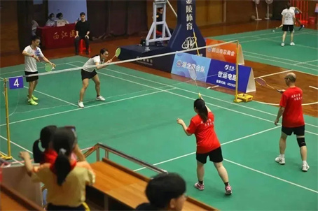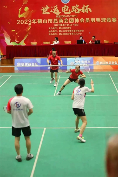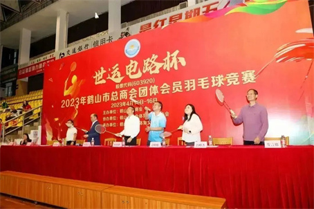 最后,劉德賢宣布比賽正式開幕,嘉賓們舉行揮拍發(fā)球儀式,共同揮拍開出了市總商會團體會員“世運電路”杯羽毛球競賽的第一球。