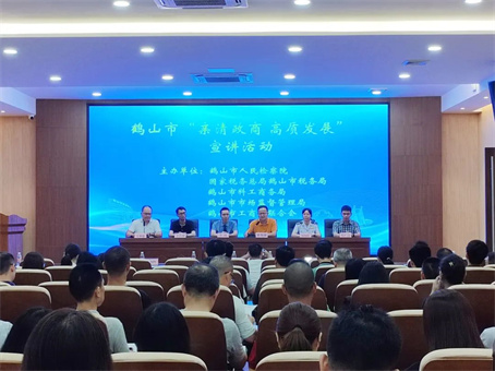 為深入貫徹《中共中央、國務(wù)院關(guān)于促進(jìn)民營經(jīng)濟發(fā)展壯大的意見》精神,進(jìn)一步推動民營經(jīng)濟實現(xiàn)高質(zhì)量發(fā)展,4月25日,市人民檢察院、市稅務(wù)局、市科工商務(wù)局、市市場監(jiān)督管理局以及市工商聯(lián)聯(lián)合開展“親清政商 高質(zhì)發(fā)展”系列宣講活動。本次為系列活動的首場,市工商聯(lián)黨組書記杜海燕以及相關(guān)職能部門負(fù)責(zé)人員,以及來自沙坪、龍口、古勞商會共計90余位企業(yè)家參加了活動。