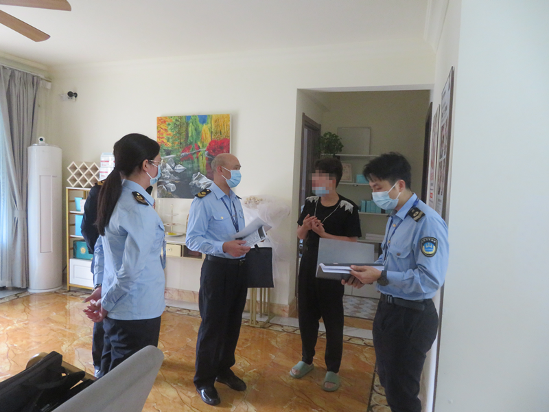 上圖:執(zhí)法人員在現(xiàn)場開展檢查