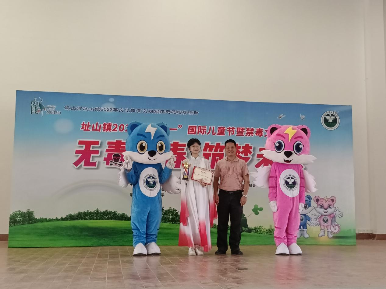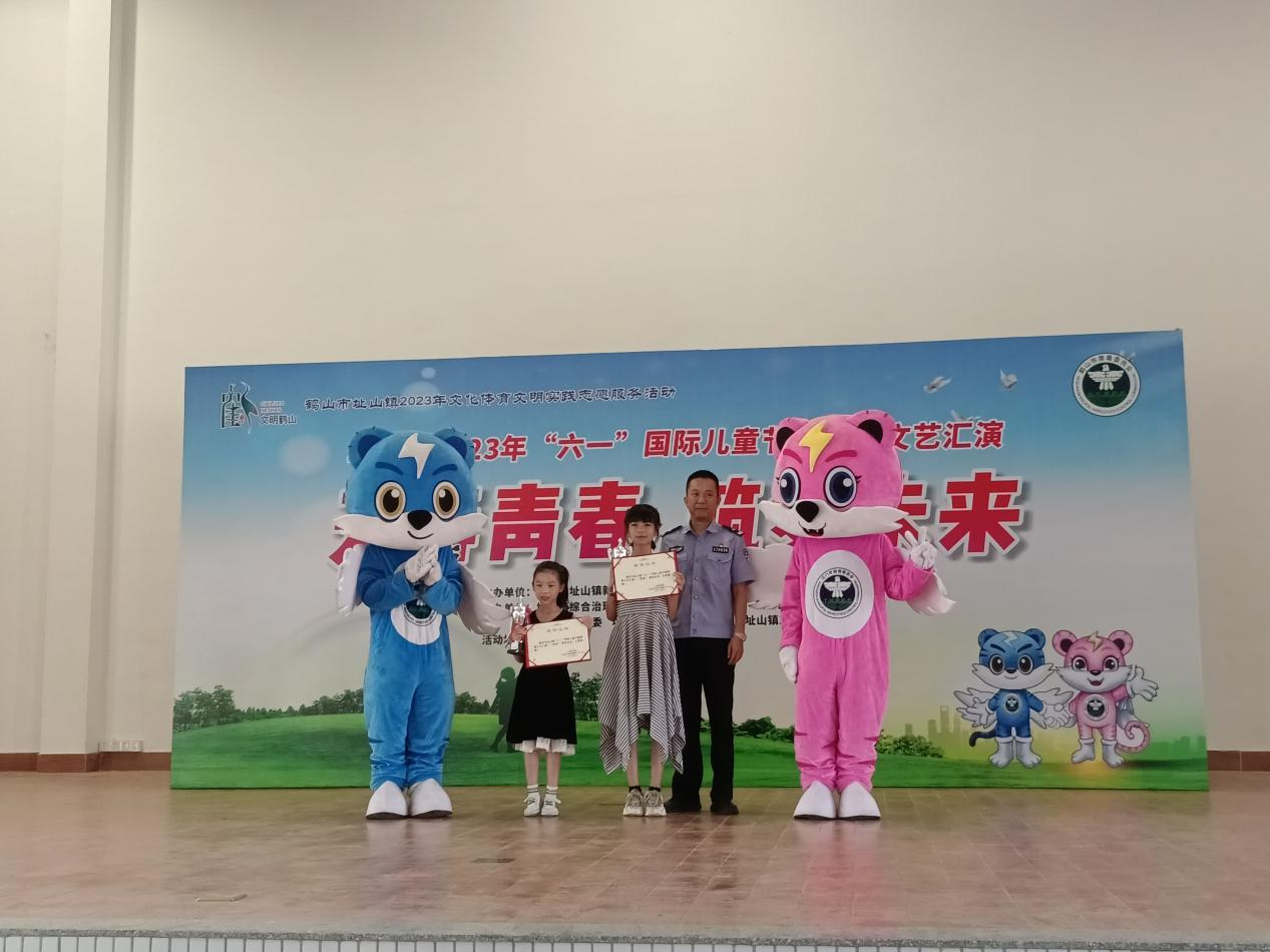 文藝匯演決出中學組一、二、三等獎各1項,小學組一等獎1項,二等獎、三等獎各2項。址山鎮(zhèn)黨委副書記黃志勇為中學組《振興中華,從我做起》頒發(fā)一等獎、址山鎮(zhèn)黨委副書記、婦聯(lián)主席孫翠雯為小學組《禁毒少年說》頒發(fā)一等獎,址山鎮(zhèn)副鎮(zhèn)長、派出所所長李超強為小學組《販賣毒品》《陽光少年》頒發(fā)二等獎,匯演還頒發(fā)了其他獎項。