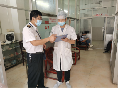上圖:衛(wèi)監(jiān)執(zhí)法人員在醫(yī)療“哨點(diǎn)”機(jī)構(gòu)督導(dǎo)檢查