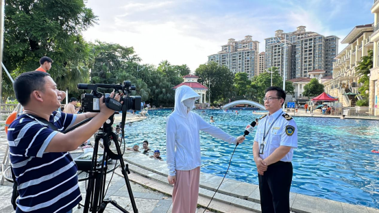 盛夏已至,為規(guī)范和加強(qiáng)我市游泳場(chǎng)所在暑假高峰期的經(jīng)營(yíng)秩序,及時(shí)發(fā)現(xiàn)并消除游泳場(chǎng)所衛(wèi)生、安全隱患,確保廣大市民游泳安全。鶴山市衛(wèi)生監(jiān)督所充分發(fā)揮輿論監(jiān)督作用,邀請(qǐng)媒體記者參與游泳場(chǎng)所專項(xiàng)檢查行動(dòng),報(bào)道、宣傳游泳場(chǎng)所相關(guān)的衛(wèi)生知識(shí)和安全隱患。