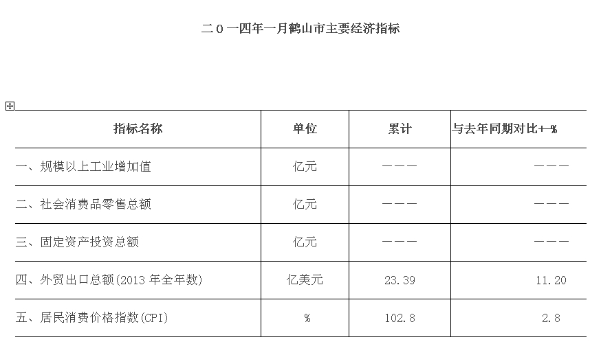 二0一四年一月鶴山市主要經(jīng)濟指標(biāo)
