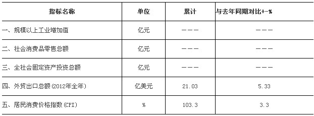 2013年1月鶴山市主要經(jīng)濟(jì)指標(biāo)