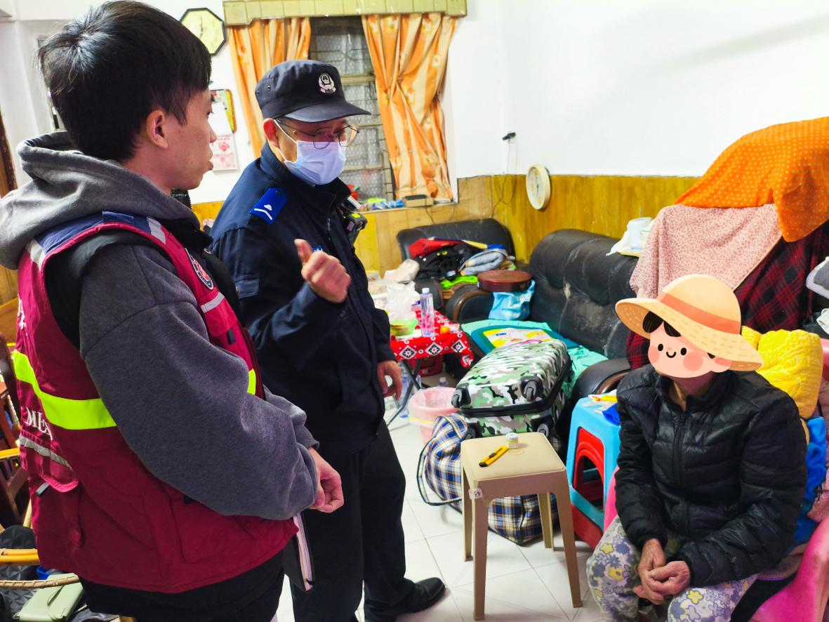 ▲新升社區(qū)網(wǎng)格員聯(lián)合轄區(qū)民警逐戶走訪了解情況