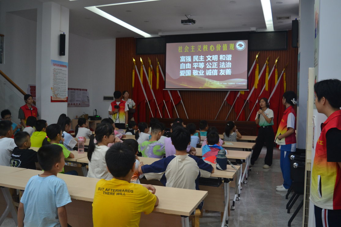 ▲“紅旗飄飄”志愿服務(wù)隊在弘揚社會主義核心價值觀