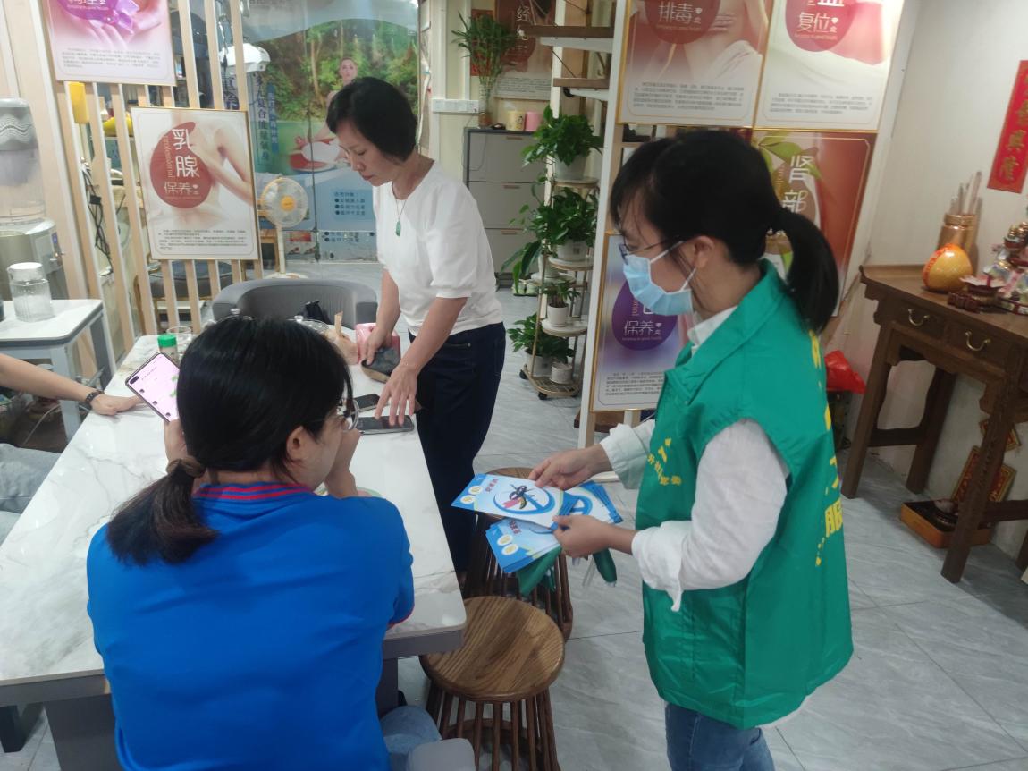 ▲“綠色文明”志愿服務(wù)隊走訪轄區(qū)宣傳預(yù)防登革熱知識