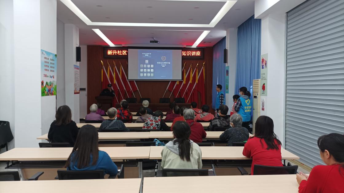 ▲“平安建設(shè)”志愿服務(wù)隊聯(lián)合轄區(qū)民警開展老年人防詐騙講座