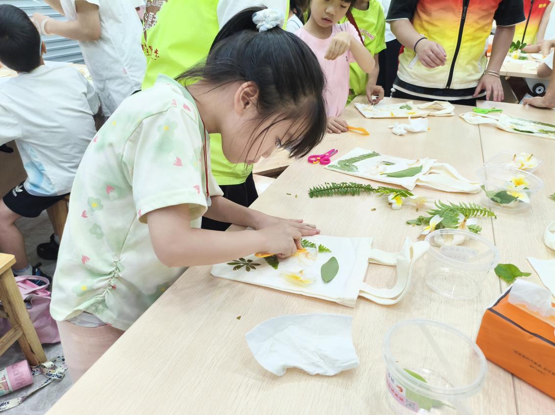 ▲轄區(qū)少年兒童在新升社區(qū)參加植物拓染活動