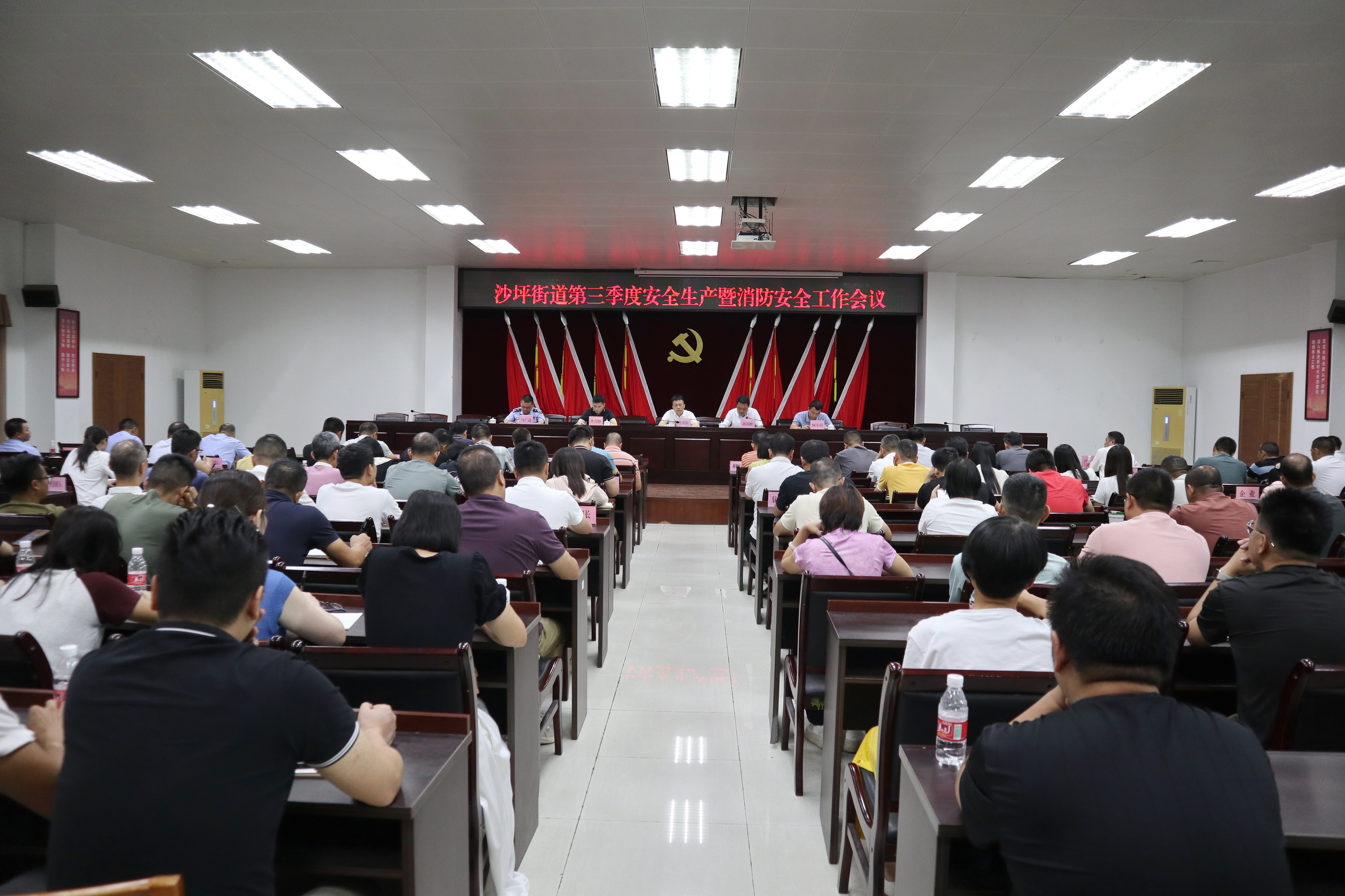 7月9日上午,沙坪街道召開第三季度安全生產(chǎn)、消防工作會(huì)議,就安全生產(chǎn)風(fēng)險(xiǎn)隱患排查治理工作進(jìn)行專項(xiàng)部署。街道領(lǐng)導(dǎo)班子,交警一、二、三中隊(duì)和街道安委會(huì)成員單位負(fù)責(zé)人,村(居)黨組織書記、駐隊(duì)組長(zhǎng),重點(diǎn)企業(yè)、消防單位負(fù)責(zé)人等150多人參加會(huì)議。