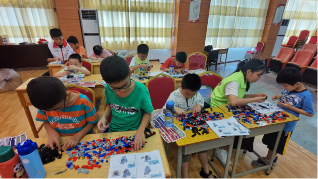 義學社區(qū)組織暑托班學生學習趣味拼接課程