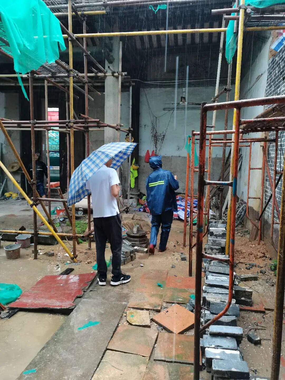 上午10時許,雅瑤鎮(zhèn)隔朗駐村組和隔朗村“兩委”干部來到村內(nèi)的德明祖祠進行隱患排查,德明祖祠是整個村落的核心,始建于明代,近期正在進行翻新修繕。鎮(zhèn)村干部在現(xiàn)場仔細檢查了工程腳手架的穩(wěn)固程度以及祖祠墻體的安全情況,確認了安全穩(wěn)固后才放下心來。