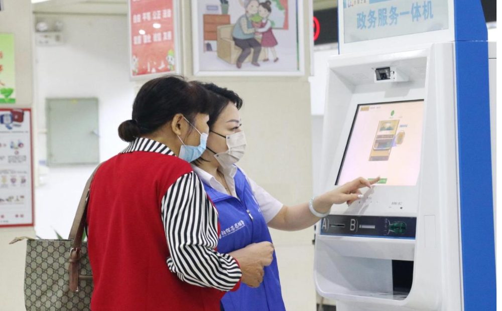 △鶴山社保開放日,報(bào)名參加的群眾現(xiàn)場(chǎng)體驗(yàn)“僑都之窗”自助機(jī)
